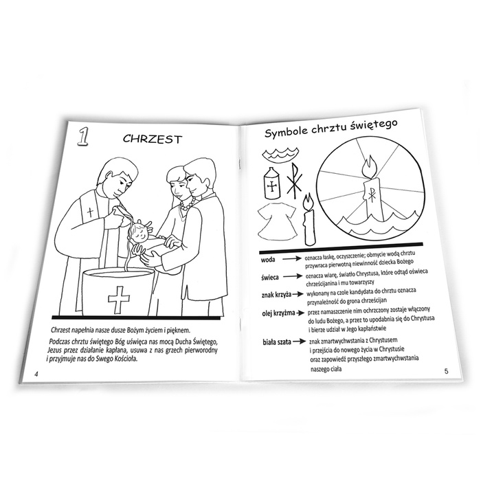 Pan Jezus pozostawił nam siedem wspaniałych darów, którymi są Sakramenty Święte. Kolorowanka objaśnia w sposób dostosowany do potrzeb i możliwości dzieci te niezwykłe dary - ich zewnętrzne znaki i duchowe działanie. Dzięki malowaniu, rysowaniu własnych obrazków, zabawom i zagadkom młody czytelnik łatwiej zapamięta przekazywane treści.