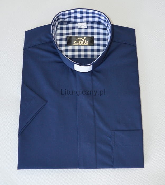 Koszula kapłańska granatowa z dużą kratką /KK08- PROMOCJA KOSZULE DOSTĘPNE OD RĘKI