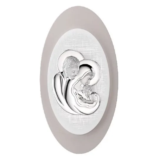 Srebrny obraz Valenti w ramie za szkłem przedstawiający wizerunek Świętej Rodziny.