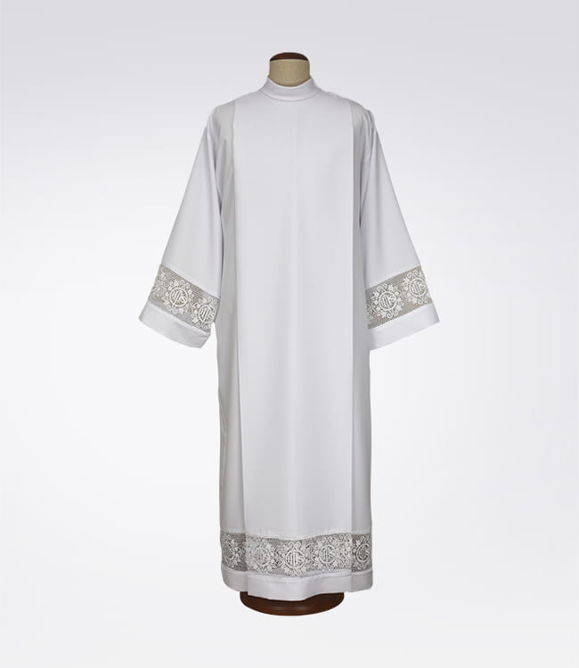 Alba wykonana z dużą starannością i dbałością o szczegóły, z przewiewnej tkaniny.