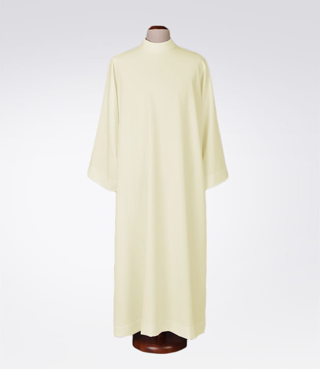 Alba wykonana z dużą starannością i dbałością o szczegóły, z przewiewnej tkaniny.