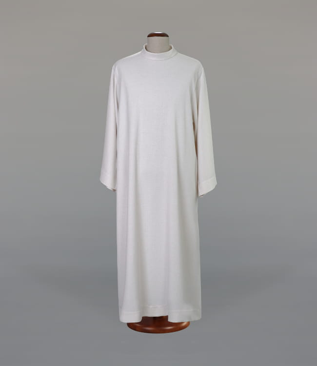 Alba kapłańska ze stójką, materiał z domieszką lnu.