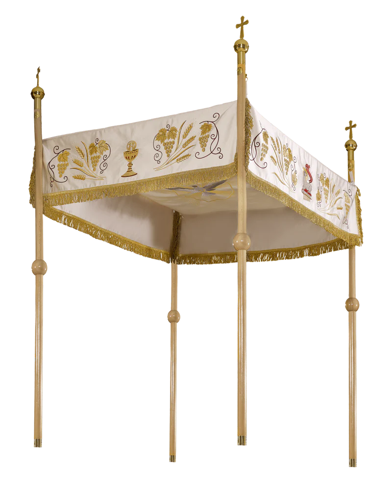 Baldachim haftowany z bogatym motywem eucharystycznym