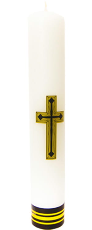 Świeca biała spalająca z motywem krzyża 28 x 4,6 cm