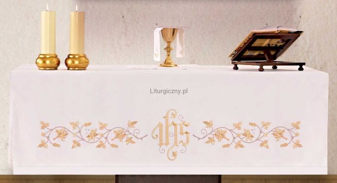 Obrus ołtarzowy do kościoła z dużym haftem IHS.