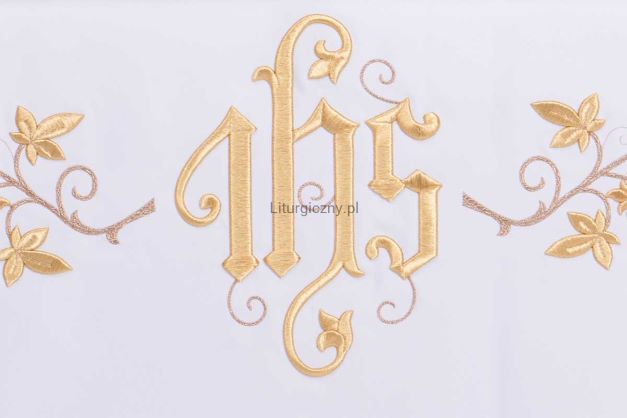 Obrus ołtarzowy z dużym, złotym haftem IHS -029