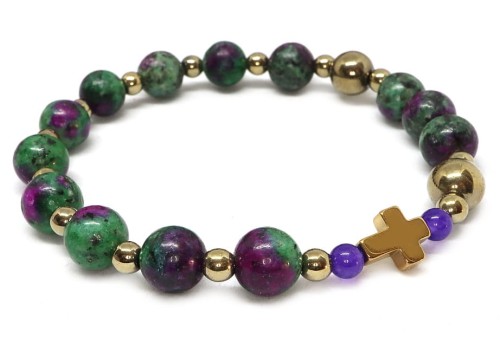 Bransoletka różaniec na rękę - zoisyt z rubinem