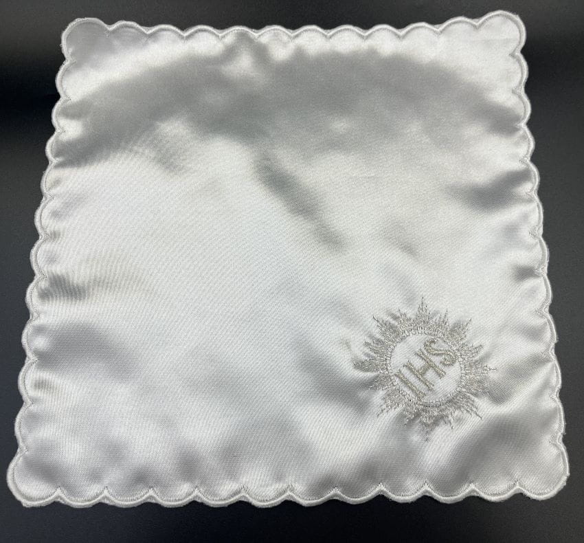 Chusteczka komunijna na chlebek - haftowana ze wzorem IHS