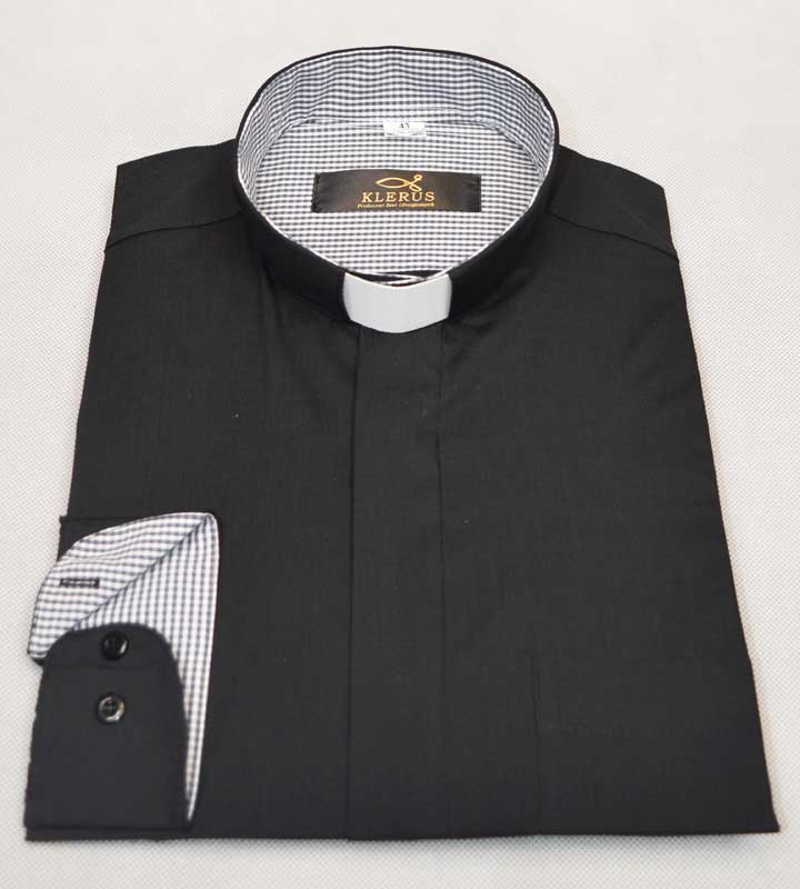 Czarna koszula kapłańska z wstawkami w kratę KK17.