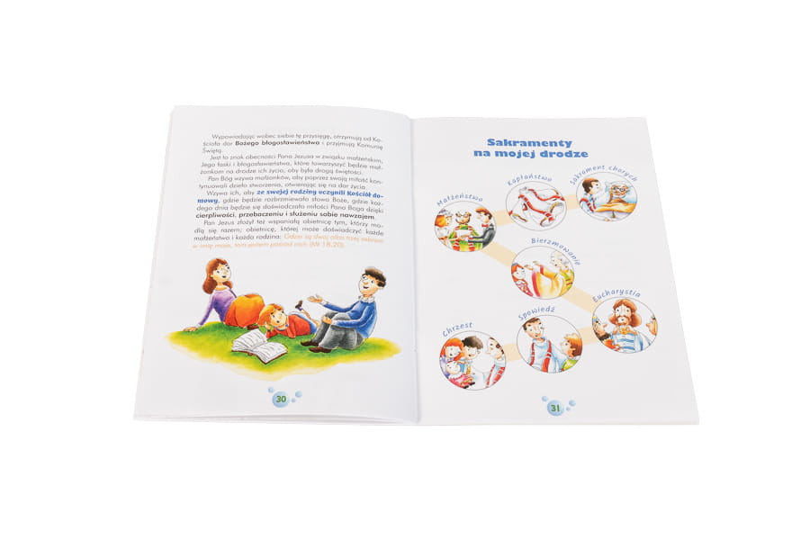 Na jej 32 stronach znajdziemy mnóstwo cennych informacji przybliżających nam: chrzest, komunię, bierzmowanie,