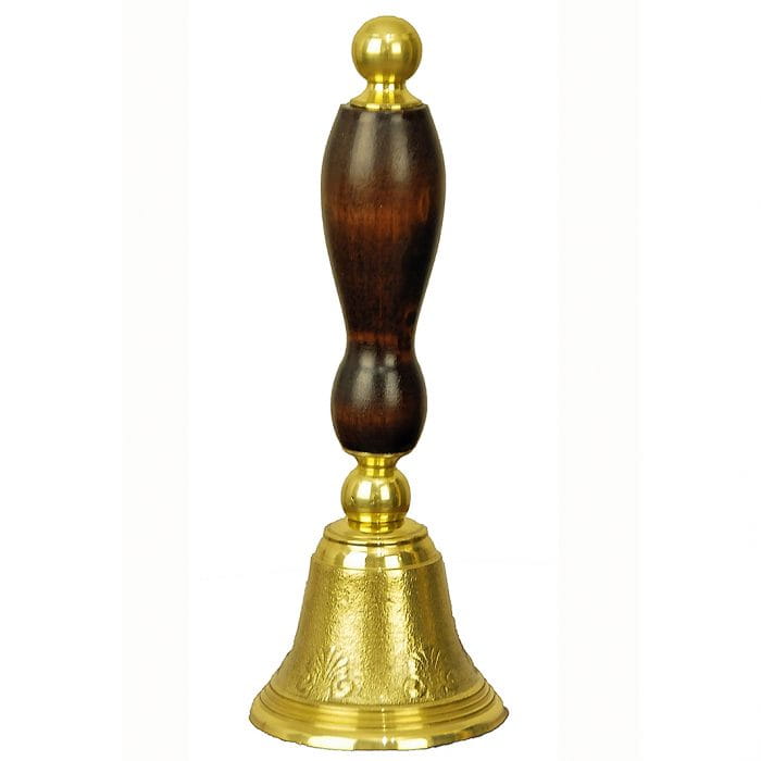 Dzwonek mosiężny do kościoła z drewnianą rączką. Produkt polski, wysokiej jakości.