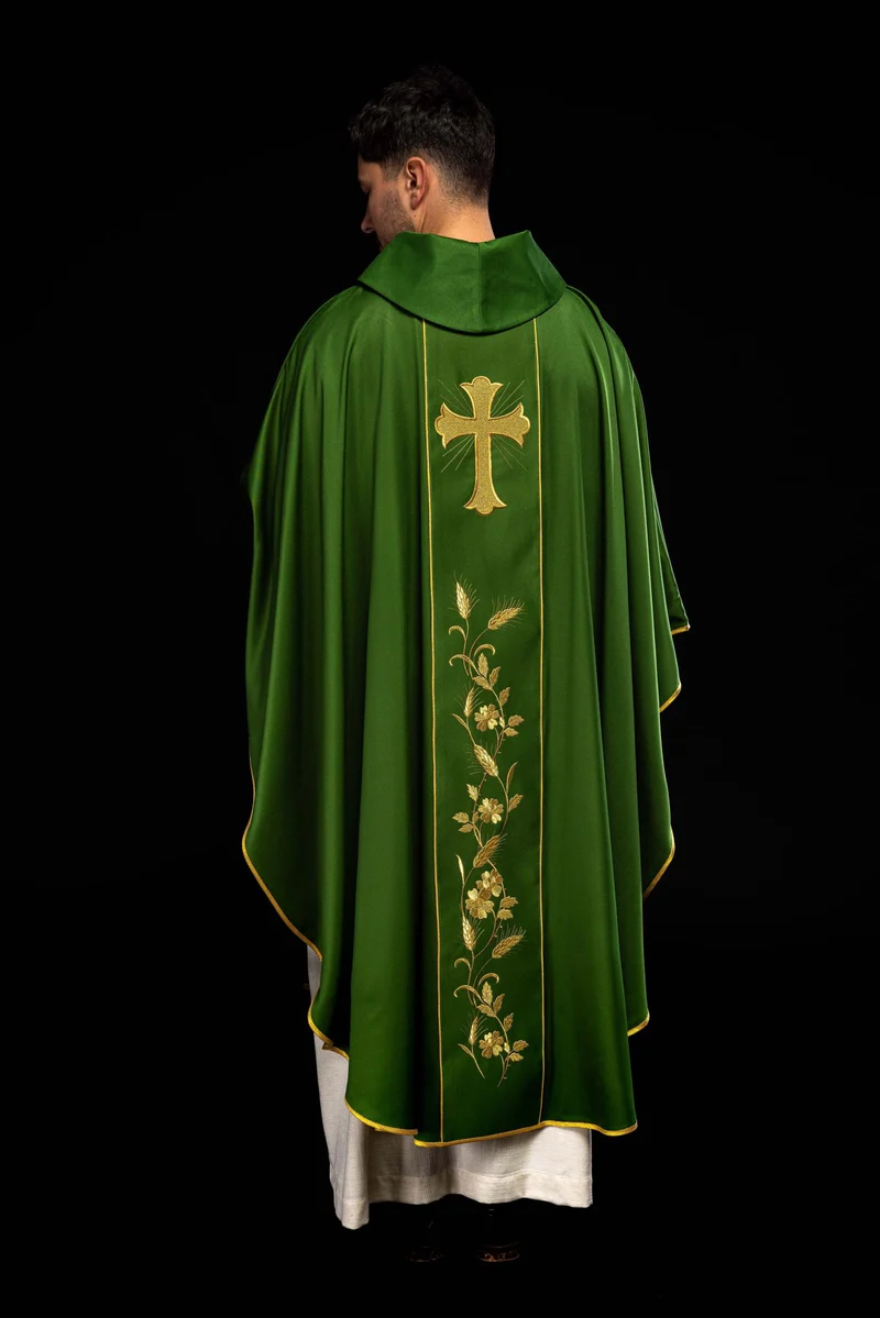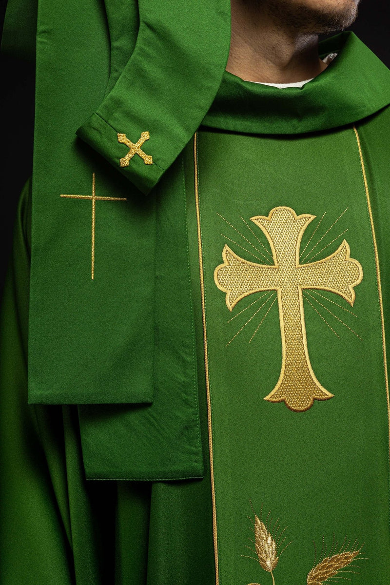 Ornat liturgiczny w kolorze zielonym ze stułą wewnętrzną w komplecie