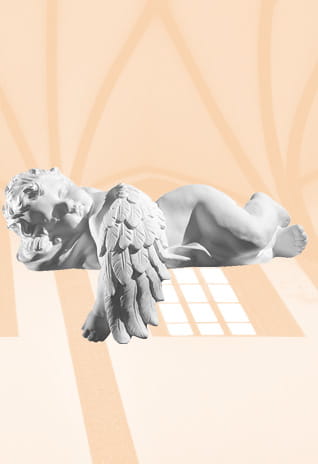Śpiący aniołek ze skrzydełkiem do dołu - 43 cm