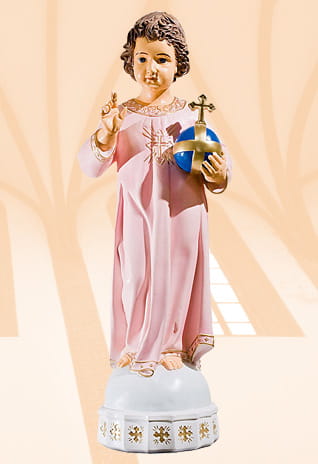 Figura Dzieciątko Świat została wykonana z z syntetycznych żywic o wysokiej trwałości. Posiada wysoką odporność na działanie czynników atmosferycznych. Figura poddana precyzyjnej obróbce ręcznej, wykończona przy użyciu wysokiej jakości, nowoczesnych farb. Dostępna w kolorach niebieskim (145N) lub różowym (145R).