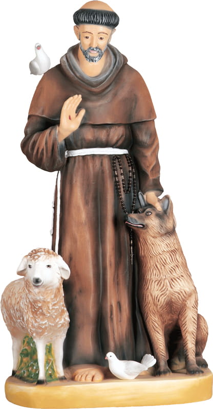Przy eksponowaniu figury na zewnątrz polecamy figurę niemalowaną (białą - wykonaną z białej masy żywicznej) - z biegiem czasu unikniemy niebezpieczeństwa złuszczania i blednięcia farby.