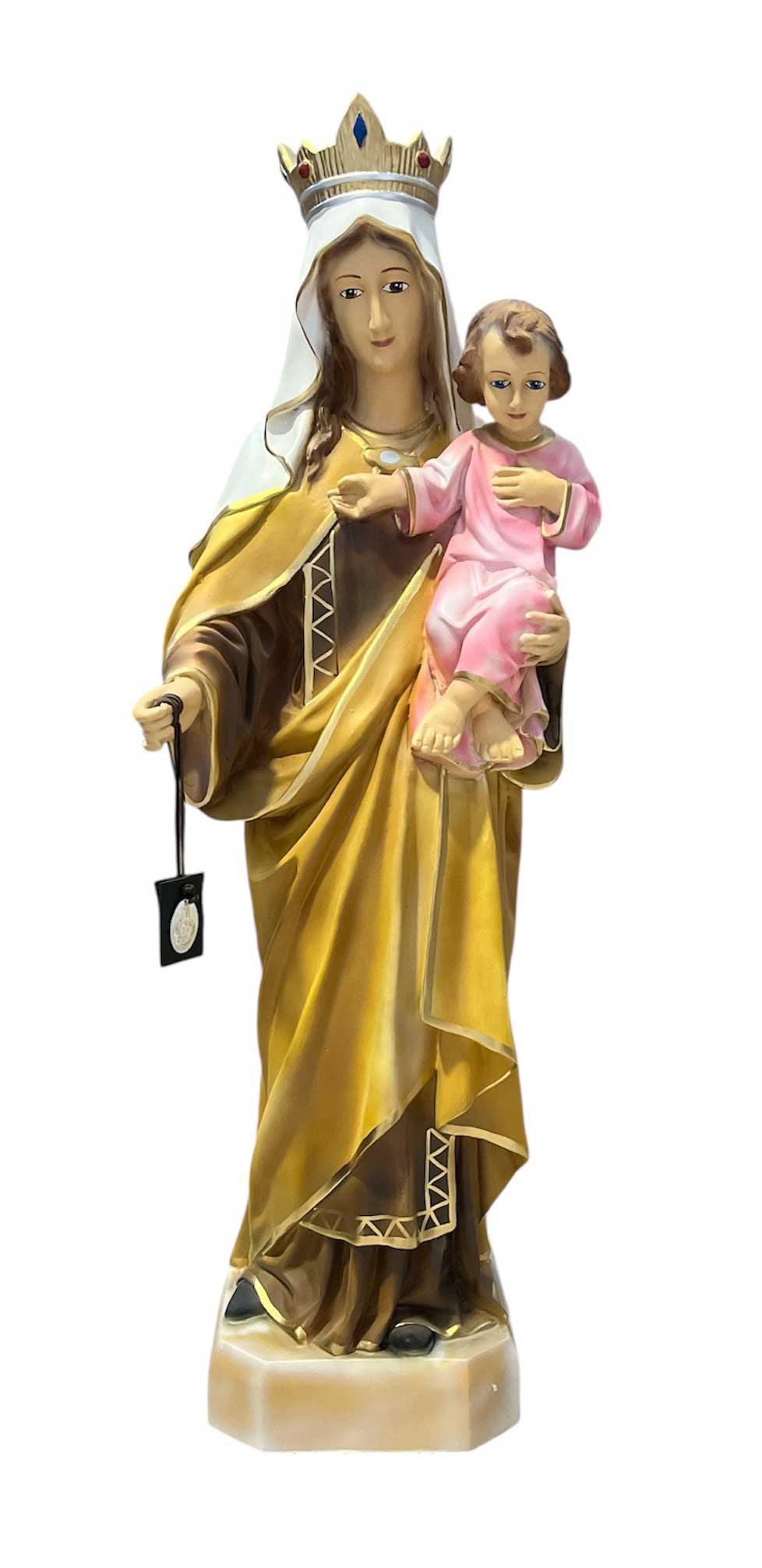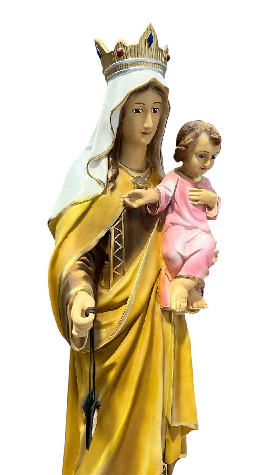 Przy eksponowaniu figury na zewnątrz polecamy figurę niemalowaną (białą - wykonaną z białej masy żywicznej) - z biegiem czasu unikniemy niebezpieczeństwa złuszczania i blednięcia farby.