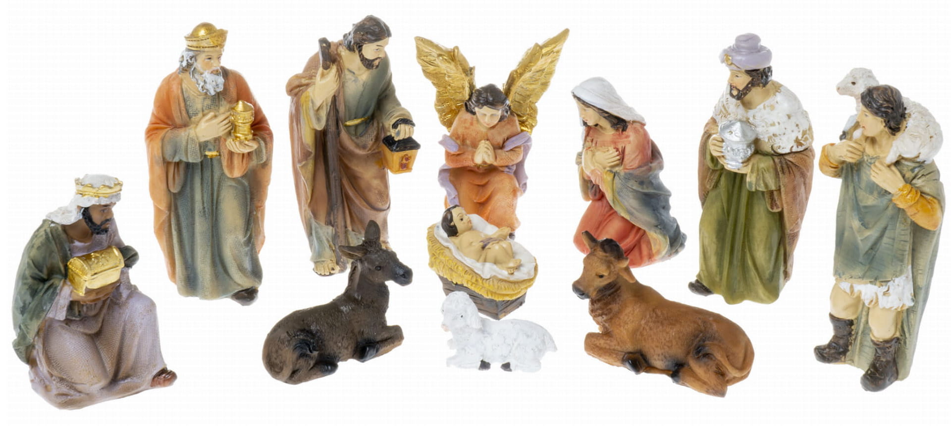 Zestaw ręcznie malowanych figurek do szopki na Boże Narodzenie. Figurki zostały wykonane z wysokiej jakości żywicy utwardzanej, tworzywo wytrzymałe, właściwościami przypominającymi ceramikę. Niezwykle dopracowane poprzez ręczne malowanie z dbałością o każdy szczegół. Figurki zapakowane w przezroczyste pudełko.
