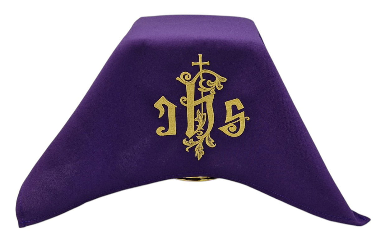 Fioletowy welon na kielich IHS z krzyżem