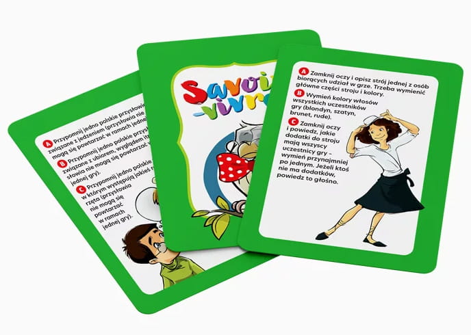 Gra edukacyjna Savoir-Vivre to wyśmienita zabawa dla całej rodziny. Składa się z ponad 300 pytań i zadań, które wprowadzają uczestników w świat etykiety. W grze przypomniano podstawowe, uniwersalne zasady obowiązujące na spotkaniach i wizytach czy w podróży. Niektóre przepisy zmieniają się, inne zależą od środowiska, ale warto poznać najważniejsze zasady. Kto pierwszy wchodzi do restauracji: kobieta czy mężczyzna? Kto powinien kroić tort weselny? Co to jest szmizjerka albo princeska? Zapraszamy, by rozpocząć z nami przygodę!