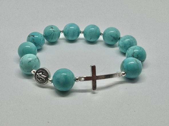 Bransoletka dziesiątka różańcowa z howlitu turkusowego, średnice paciorków ok. 12 mm.