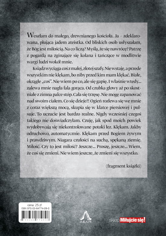 Klękam przed Bogiem żywym i prawdziwym. Niagara czułości na suchą, spękaną ziemię. Miłość. Czy to jest miłość? Jeszcze… Proszę, jeszcze… Wiem, że coś się zmieni.