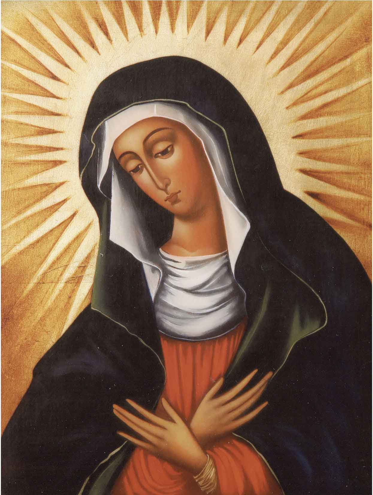 M.B. Ostrobramska malowana na drewnie techniką decoupage.