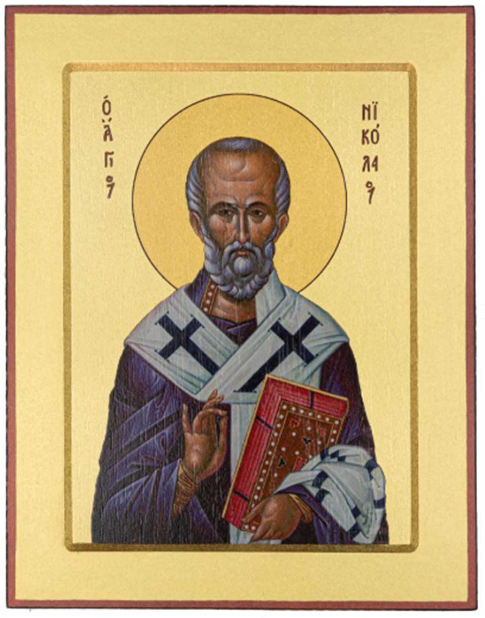 Święty Mikołaj, z oczywistych względów szczególnie lubiany przez dzieci, urodził się w 270 r., zmarł 6 grudnia ok. 345-352 r. Od dzieciństwa szczególnie wrażliwy na potrzeby innych. Powszechnie znana jest historia uratowania przez niego przed staropanieństwem trzech córek zubożałego szlachcica, przedstawiana w literaturze i sztuce, m.in. w „Boskiej komedii” Dantego. Święty pierwszych wieków chrześcijaństwa, biskup Myry. Jeden z Czternastu Wielkich Wspomożycieli Kościoła, czczony również przez prawosławnych – jako uczestnik soboru łączącego oba Kościoły. Patron bezinteresownej dobroci, swą opieką obejmuje spory wachlarz ludzi i ich potrzeb: handlowców, żeglarzy, kupców, więźniów, niesprawiedliwie oskarżonych;orędownik pomyślnego zamążpójścia i urodzenia dzieci.