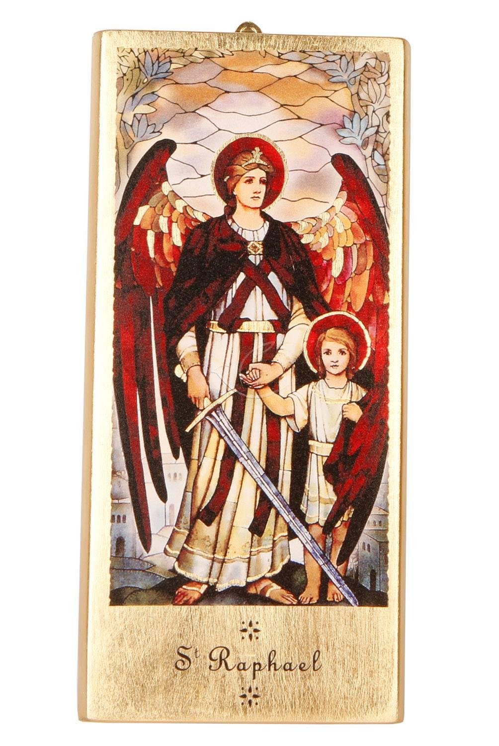Piękny, ręcznie złocony obraz z wizerunkiem Archanioła Rafała.