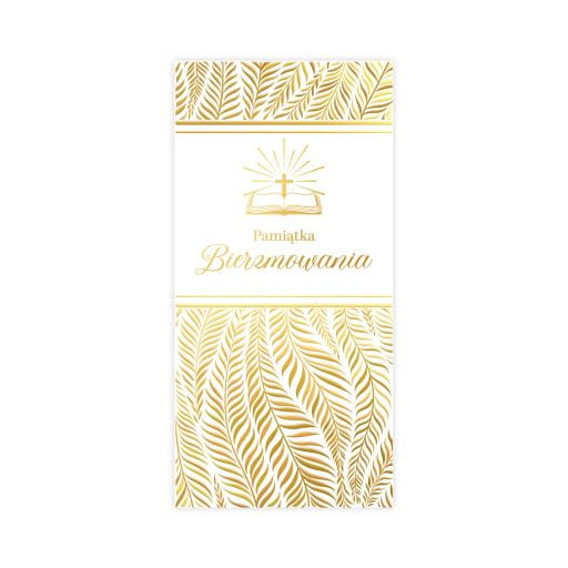 Kartka wykonana z eleganckiego, wysokogatunkowego papieru z delikatnymi złoceniami.