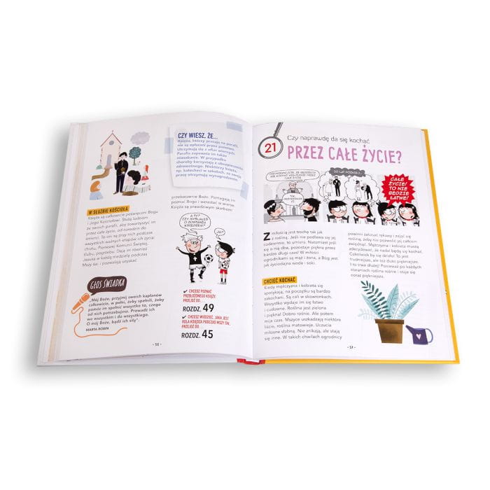 że pytania dotyczące wiary chrześcijańskiej mogą być zabawne i ciekawe! Znajdziesz w niej odpowiedzi na pytania zadawane przez sympatycznych bohaterów, Zosię i Tomka. Wszystko w atrakcyjnym, bogato ilustrowanym wydaniu wykorzystującym elementy komiksu.