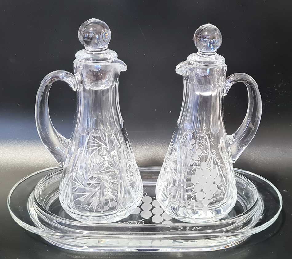 Komplet ampułek kryształowych szklanych - dwie ampułki + tacka.