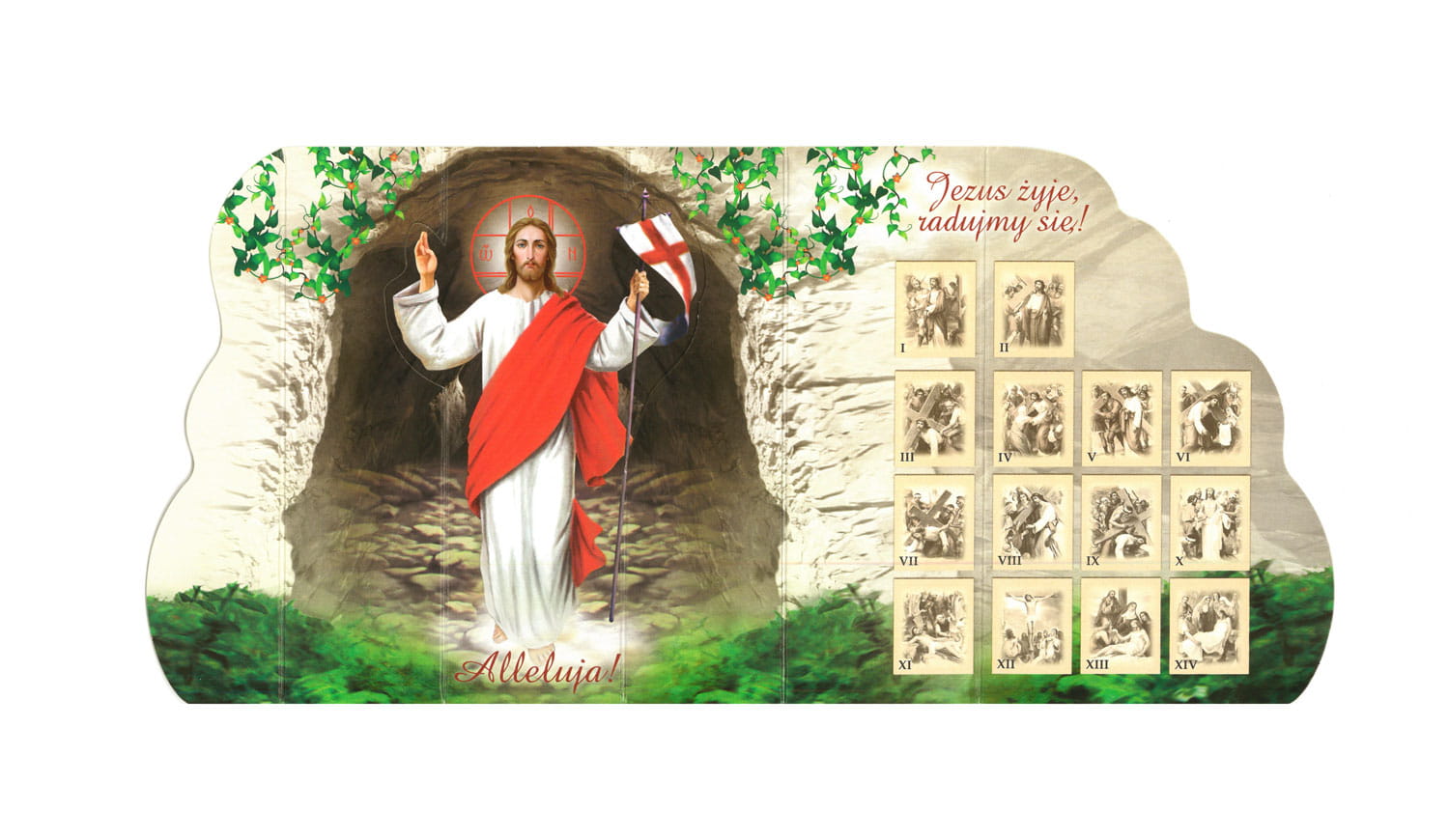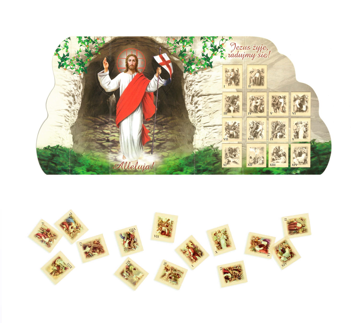 - Do każdego obrazka dołączone są stacje drogi krzyżowej na papierze samoprzylepnym.