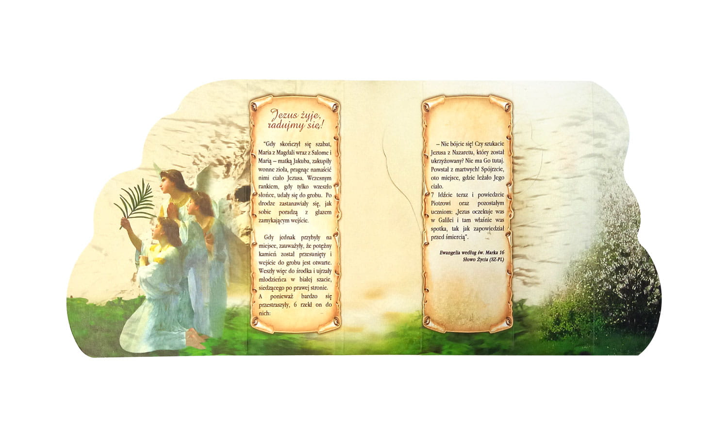 - 25 arkuszy z postacią Jezusa Zmartwychwstałego na tle groty.