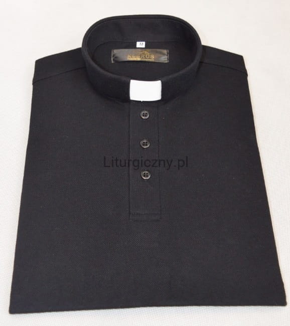 Koszulka ze specjalnym tunelem na koloratkę, zapinana na trzy guziki, z krótkim rękawem.