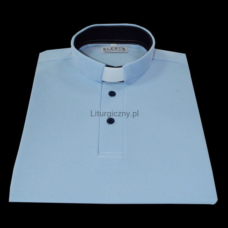 Koszulka ze specjalnym tunelem na koloratkę, zapinana na trzy guziki, z krótkim rękawem.