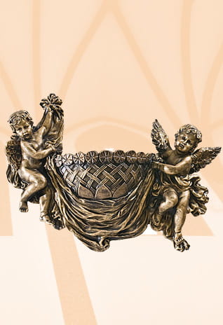 Misa zdobiona z aniołkami. Została wykonana z z syntetycznych żywic o wysokiej trwałości (struktura kamienia). Poddana precyzyjnej obróbce ręcznej, wykończona przy użyciu wysokiej jakości, nowoczesnych farb. Dostępna w wielu kolorach: starego złota, białym, włoskiego złota oraz srebrnym.
