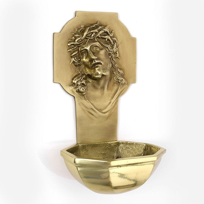 Kropielnica kościelna z wizerunkiem Jezusa wykonana z najwyższej jakości mosiądzu.