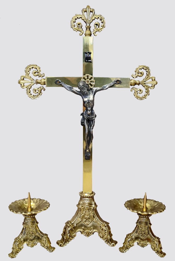 Zestaw mosiężny ołtarzowy - krzyż ze świecznikami SK-38 / SW-05