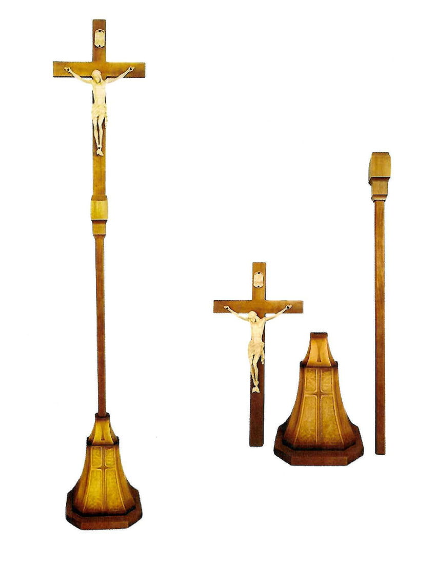 Wykonany w całości z drewna lipowego krzyż procesyjny 3 częściowy.