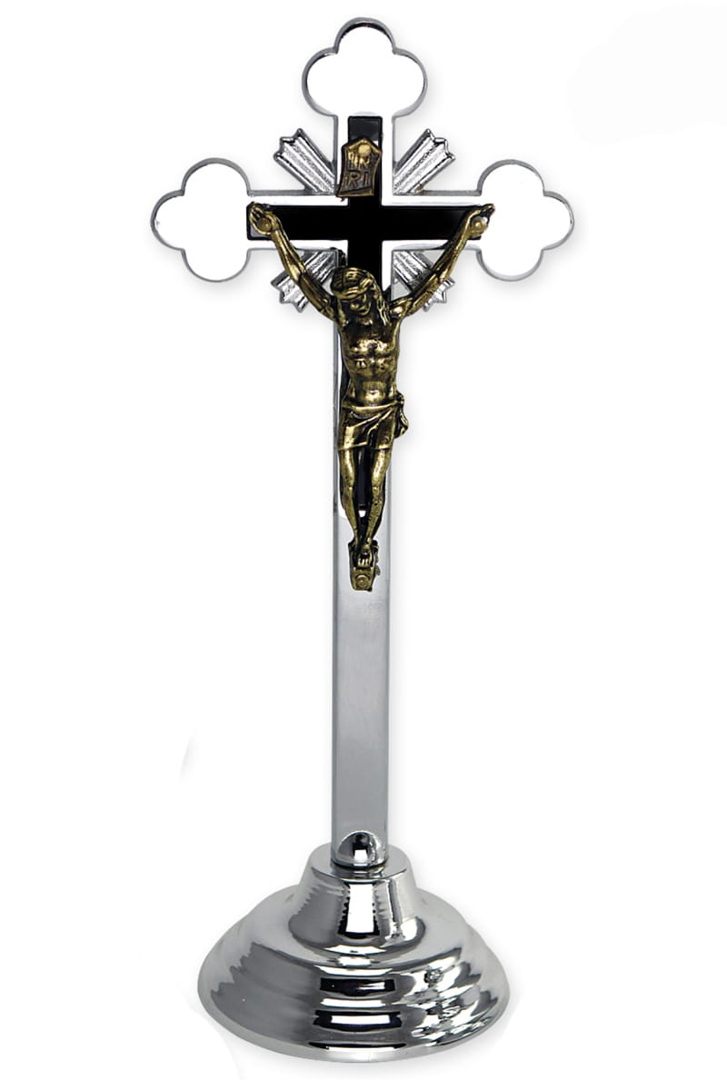 Krzyż tradycyjny stojący w kolorze srebrnym
