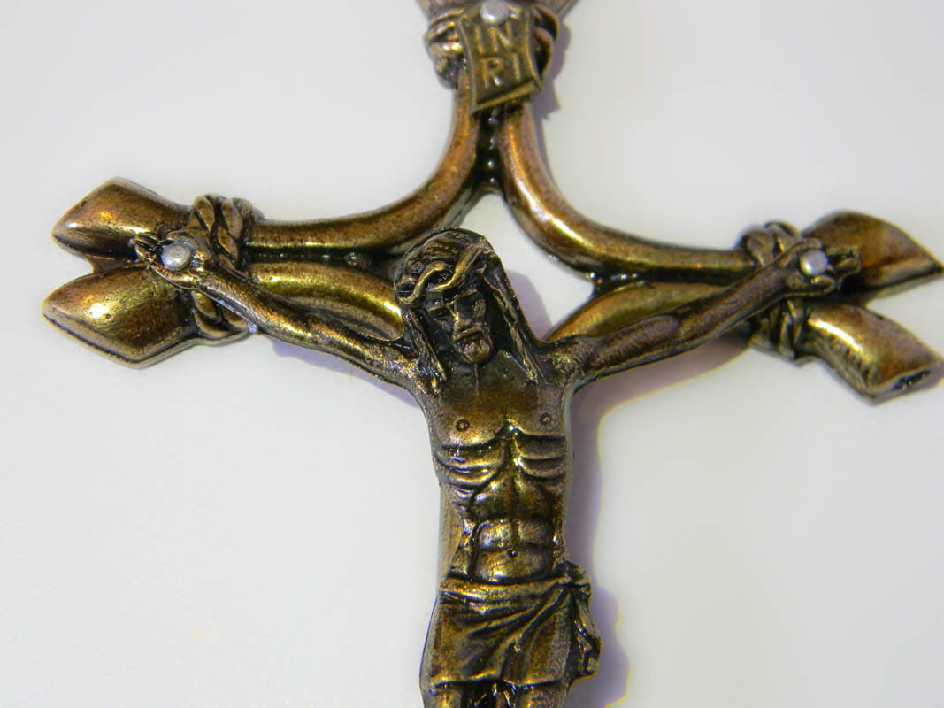 Krzyż z przeznaczeniem do zawieszenia w kolorze starego złota.
