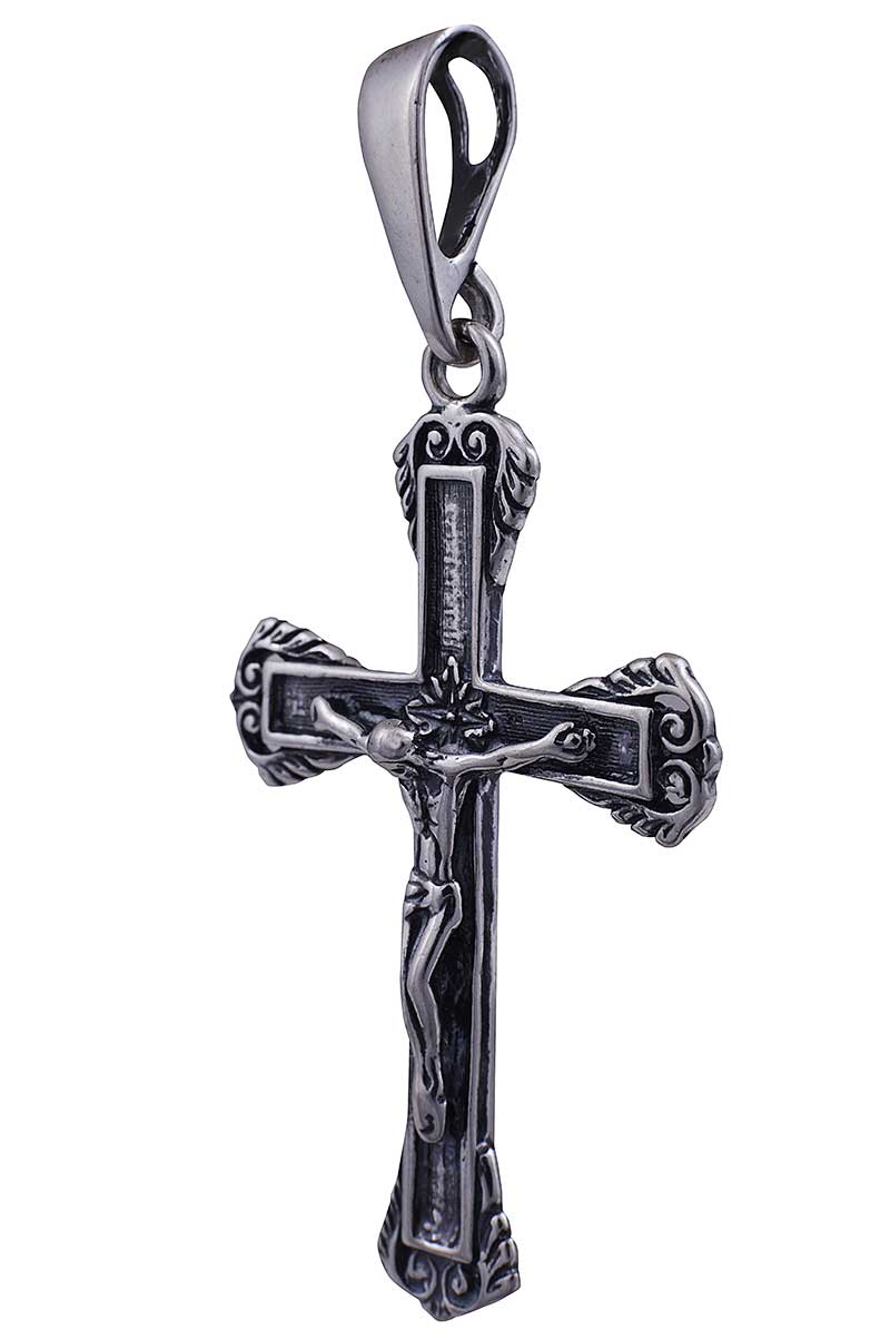 Ozdobny, duży krzyżyk w formie zawieszki ze srebra oksydowanego.