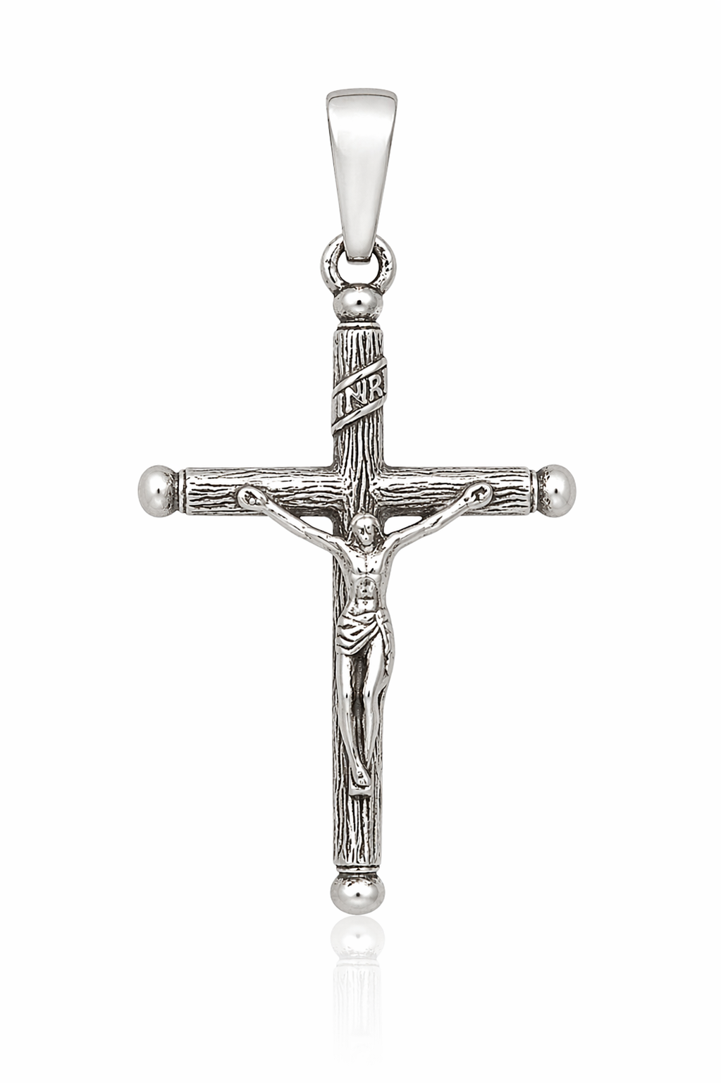 Krzyż w całości wykonany z najwyższej jakości srebra, z wizerunkiem Chrystusa.