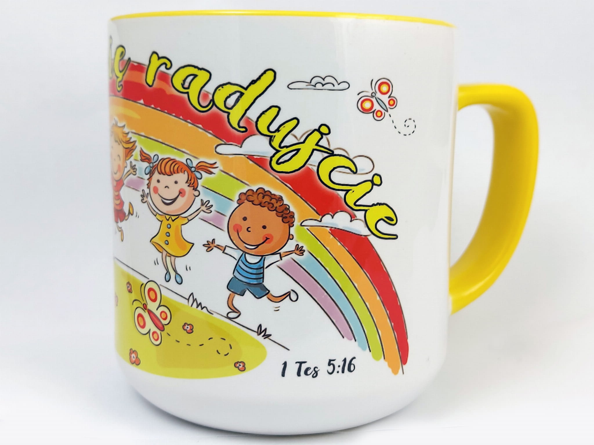 Kubek biało-żółty "Zawsze się radujcie"