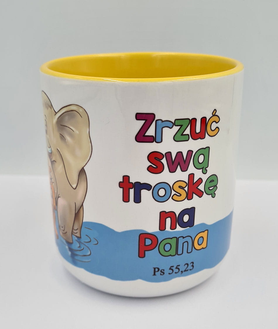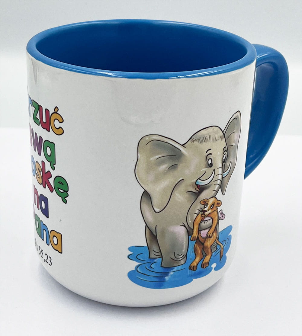 Kubek ceramiczny z kolorowym wnętrzem i rączką, nadruk kolor.