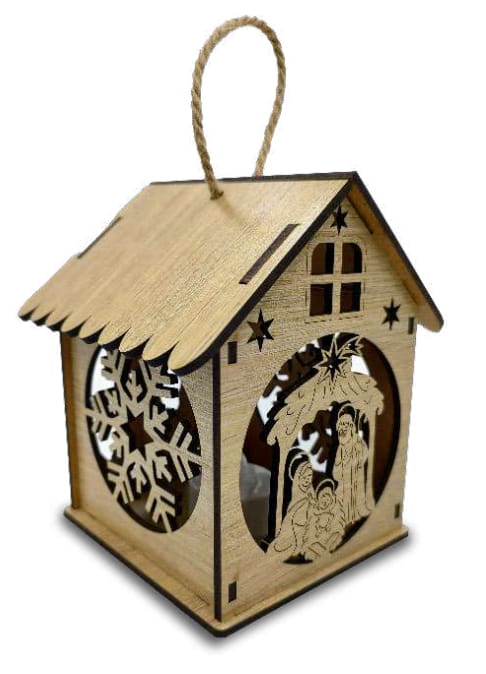 Drewniany lampion z wizerunkiem Świętej Rodziny - wypalany laserowo.