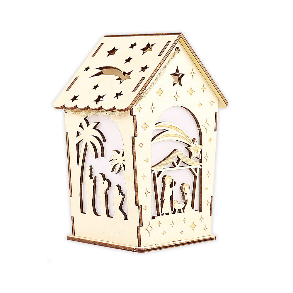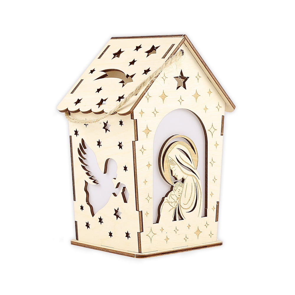 Lampion to wyjątkowy element dekoracyjny, który wniesie magiczny nastrój do Twojego domu. Wykonany z wycinanej drewnianej sklejki, lampion jest starannie zaprojektowany, by zachwycać precyzją i pięknem naturalnych materiałów. Dzięki dołączonej lampce LED, czas świecenia wynosi około 30 dni, co pozwala na długotrwałe cieszenie się jego ciepłym, świątecznym blaskiem. Lampion wyposażony jest w sznurek, który ułatwia trzymanie, co czyni go idealnym wyborem na roraty.