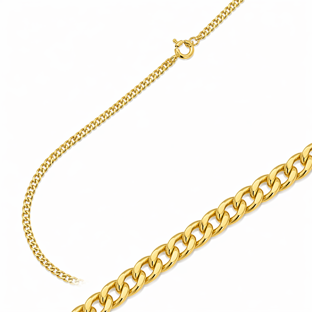 Łańcuszek o prostym splocie uniwersalnym wykonany z najwyższej jakości srebra, próba 925. Dodatkowo pozłacany.