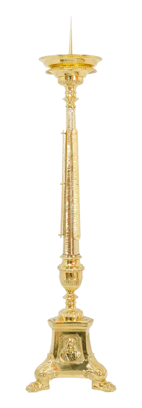 Lichtarz 1301 to elegancki i solidnie wykonany element wyposażenia liturgicznego, który doskonale wpisuje się w estetykę wnętrz sakralnych. Wykonany z wysokiej jakości mosiądzu i pokryty warstwą lakieru ochronnego, zachwyca swoim klasycznym wyglądem oraz trwałością.