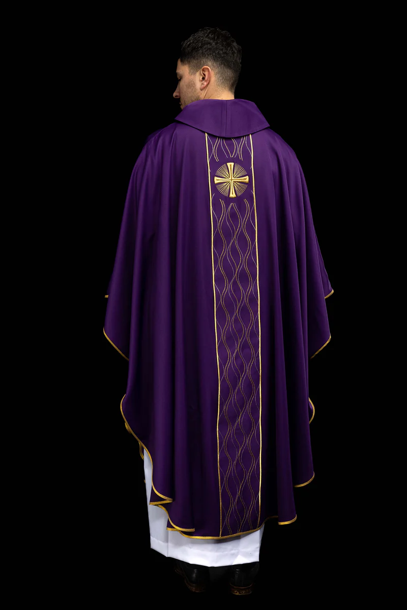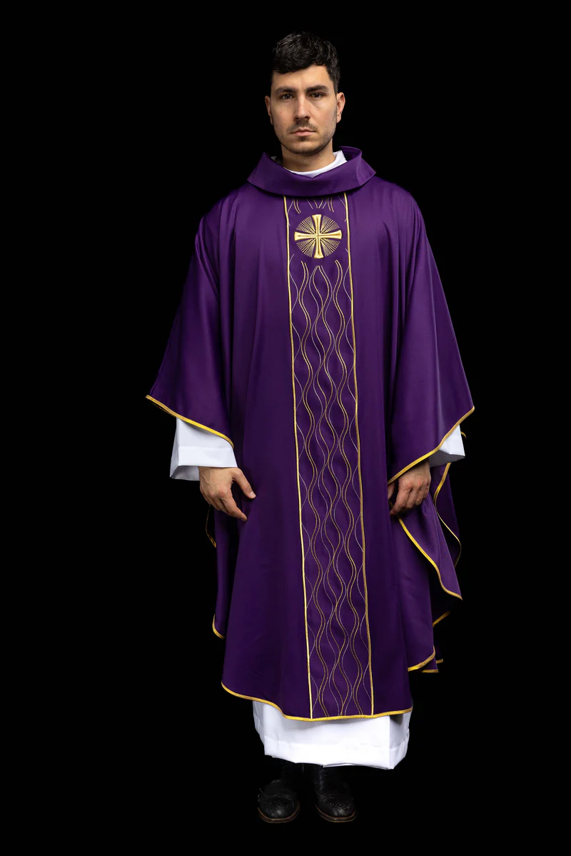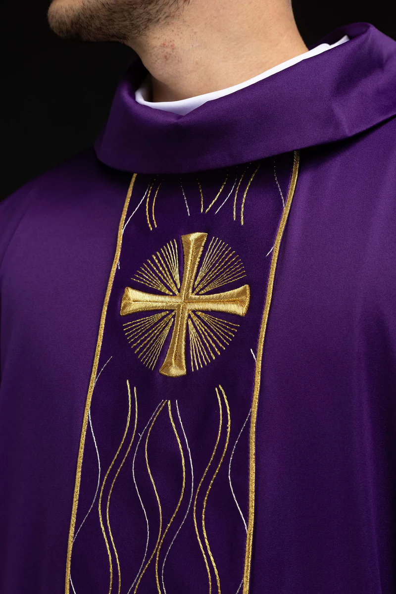 Ornat fioletowy z haftem krzyż ze stułą wewnętrzną w komplecie